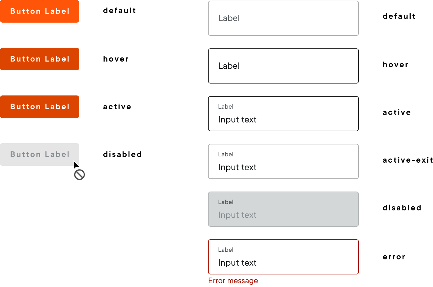 Clear states make interactions predictable and accessible. Every interactive component has consistent hover, active, disabled.