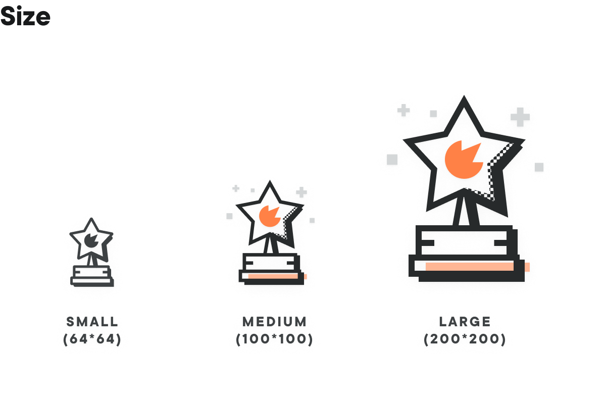 While creating this set of illustrations, we designed them at different sizes (64, 100, and 200 pixels). As the size decreases, the level of detail decreases as well, this way we can have different options for different UI.